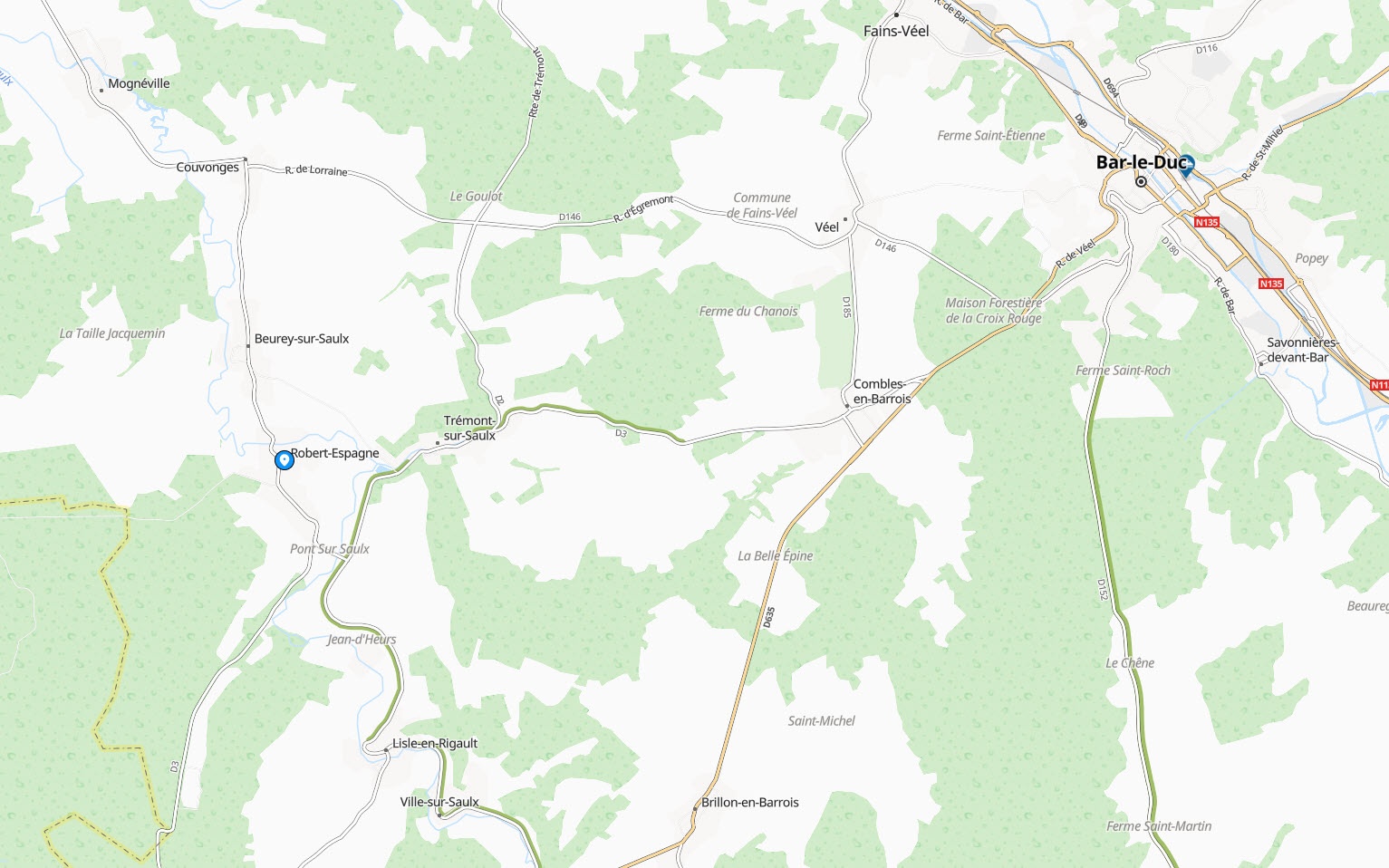 ROBERT-ESPAGNE : situation géographique du village de la Région Grand-Est